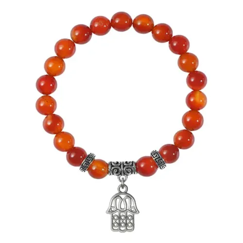 Браслет-амулет Хамса из натурального сердолика с подвеской из бижутерного сплава.