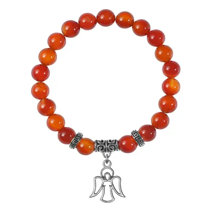 Браслет из натурального сердолика с подвеской-талисманом в виде ангела-хранителя.
