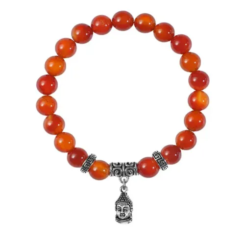 Браслет-амулет из натурального сердолика с подвеской в виде Будды из бижутерного сплава.