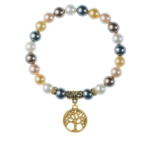 Браслет-амулет из искусственного жемчуга майорка с подвеской в виде дерева жизни.