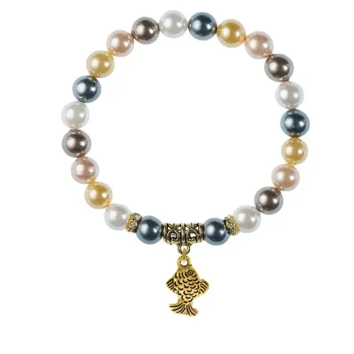 Браслет-амулет из искусственного жемчуга майорка с подвеской в виде рыбки.