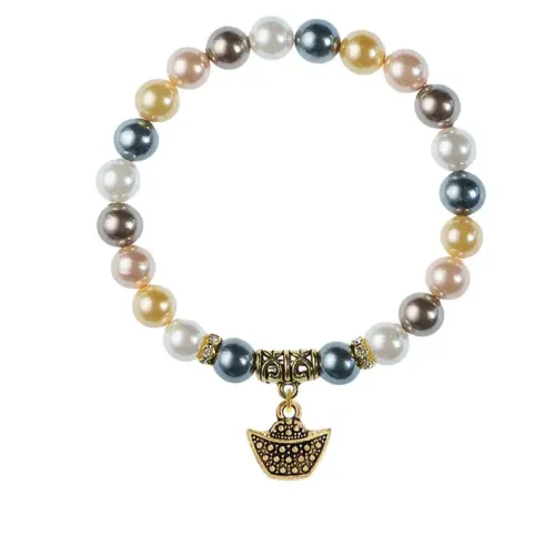 Браслет из искусственного жемчуга майорка с подвеской-талисманом в виде слитка.