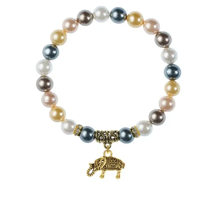Браслет-амулет из искусственного жемчуга (майорка) с подвеской в виде слона.