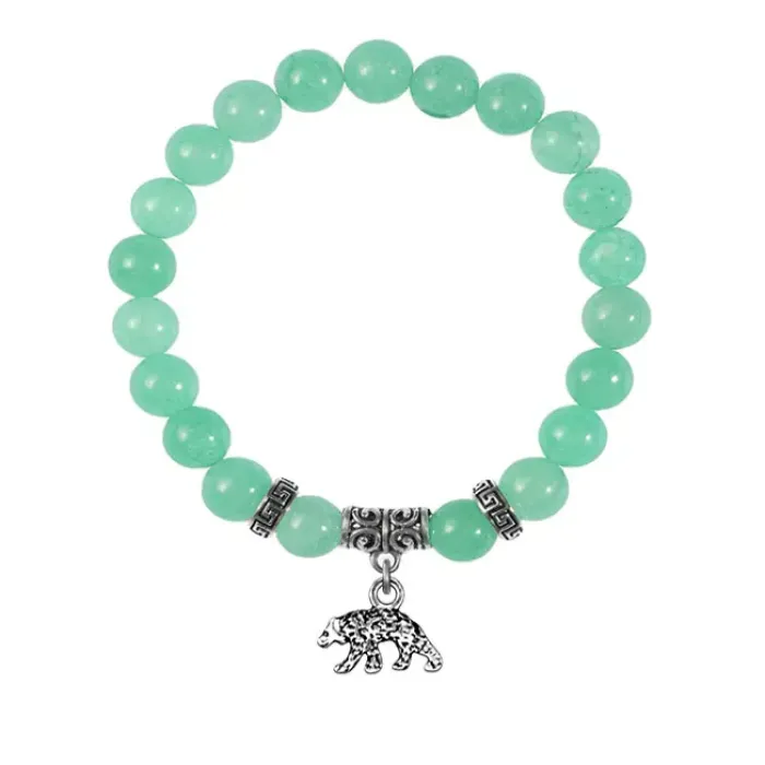 Браслет из натурального нефрита с подвеской в виде медведя из бижутерного сплава.