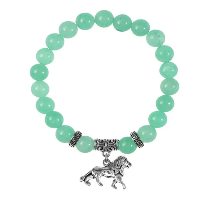 Браслет из натурального нефрита с подвеской в виде льва из бижутерного сплава.