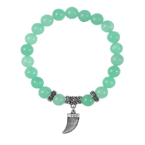 Браслет-амулет из натурального нефрита с подвеской в виде клыка из бижутерного сплава.