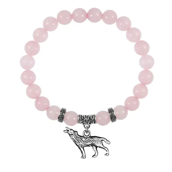 Браслет Волк (защита, сила, победа), Розовый кварц BSPE-03-28
