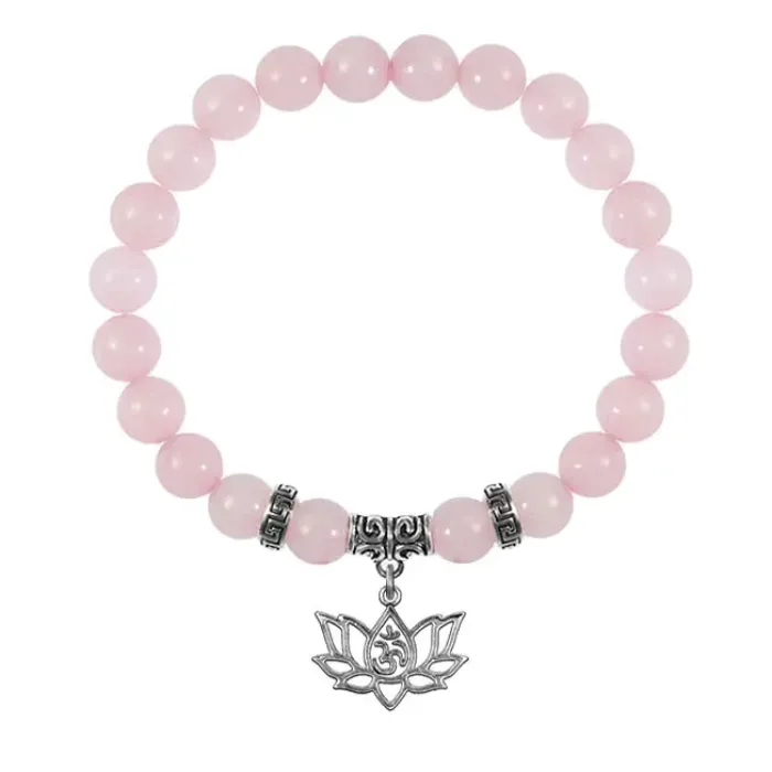 Браслет Лотос и Ом (гармония и развитие), Розовый кварц BSPE-03-30