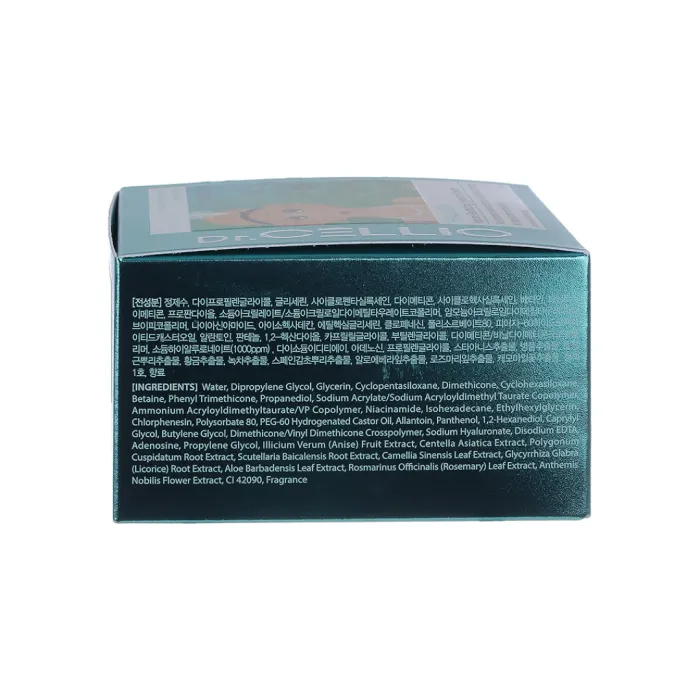 Состав: Гиалуронат натрия, ниацинамид, пантенол, аденозин, экстракт плодов аниса, экстракт центеллы азиатской, экстракт корня Polygonum cuspidatum, экстракт корня шлемника байкальского, экстракт листьев камелии китайской, экстракт корня лакрицы, экстракт листьев алоэ вера, экстракт листьев розмарина, экстракт цветков ромашки.