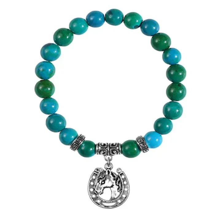 Браслет с подвеской в виде подковы из синтетической хризоколлы и бижутерного сплава.