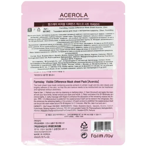 Тканевая маска с экстрактом ацеролы Visible Difference Mask Sheet Acerola 23 мл FarmStay