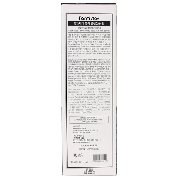 Пенка для умывания с древесным углем Charcoal Pure Cleansing Foam 180 мл FarmStay