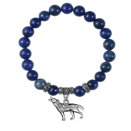 Браслет-амулет из натурального лазурита с подвеской из бижутерного сплава.