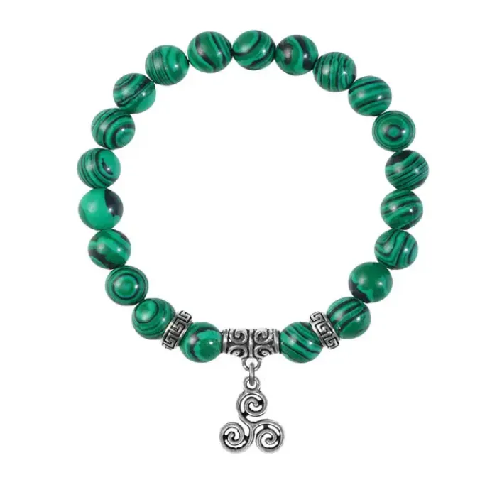 Браслет-амулет из синтетического малахита с подвеской-талисманом в виде трискеля.