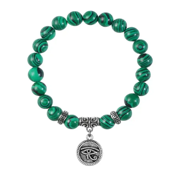 Браслет из синтетического малахита с подвеской в виде символа Око Ра.