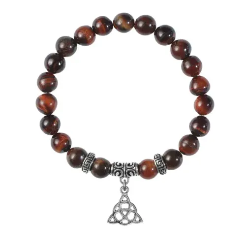 Браслет-амулет из натурального камня бычий глаз с подвеской в виде символа трикветр.