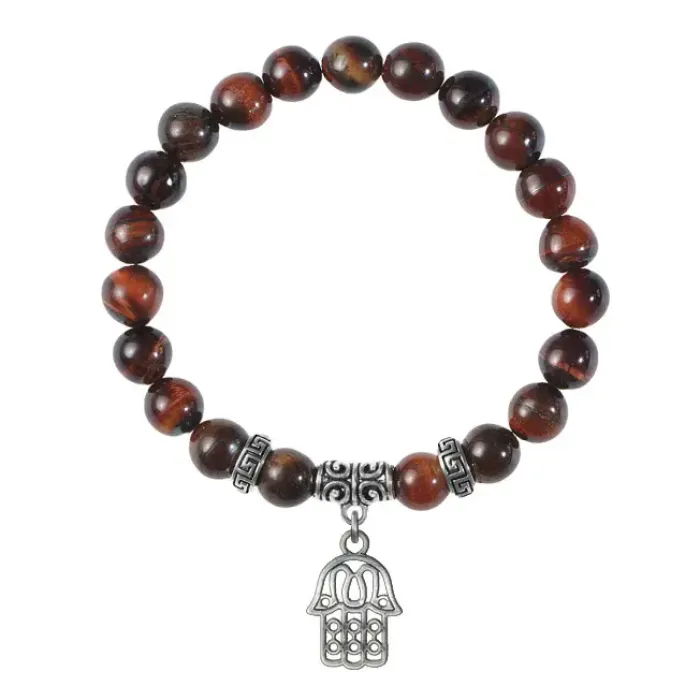 Браслет-амулет Хамса из натурального камня бычий глаз с подвеской из бижутерного сплава.