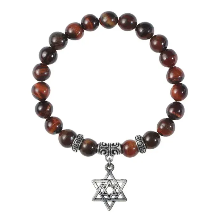 Браслет-амулет из натурального камня бычий глаз с подвеской в виде звезды Давида.
