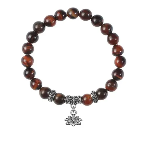Браслет из натурального камня бычий глаз с подвеской-талисманом в виде лотоса.
