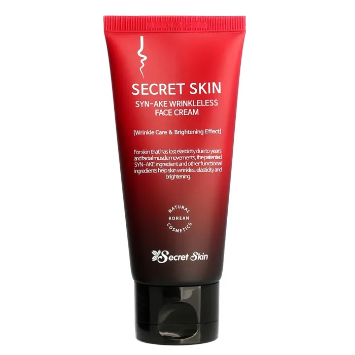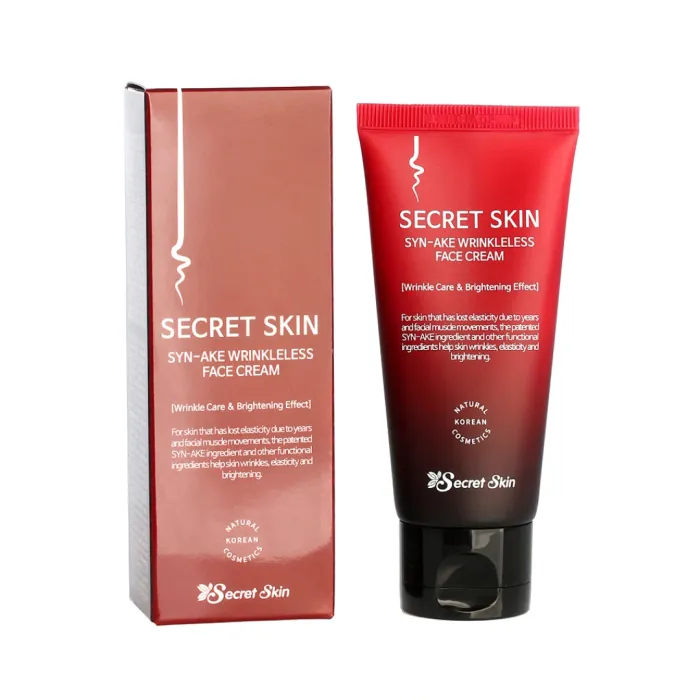 Крем для лица Syn-Ake Wrinkleless Face Cream от Secret Skin — это эффективное средство для борьбы с возрастными изменениями кожи. Благодаря содержанию змеиного пептида, крем обладает интенсивным лифтинговым действием. Он укрепляет овал лица, борется с провисанием кожи и восстанавливает её эластичность и гладкость. Змеиный пептид в составе крема действует аналогично токсинам из яда змеи, расслабляя мимическую мускулатуру и разглаживая мелкие мимические морщины. Кроме того, он помогает предотвратить появление новых морщин.