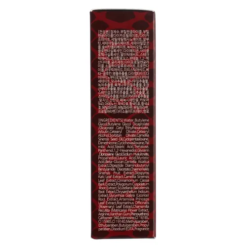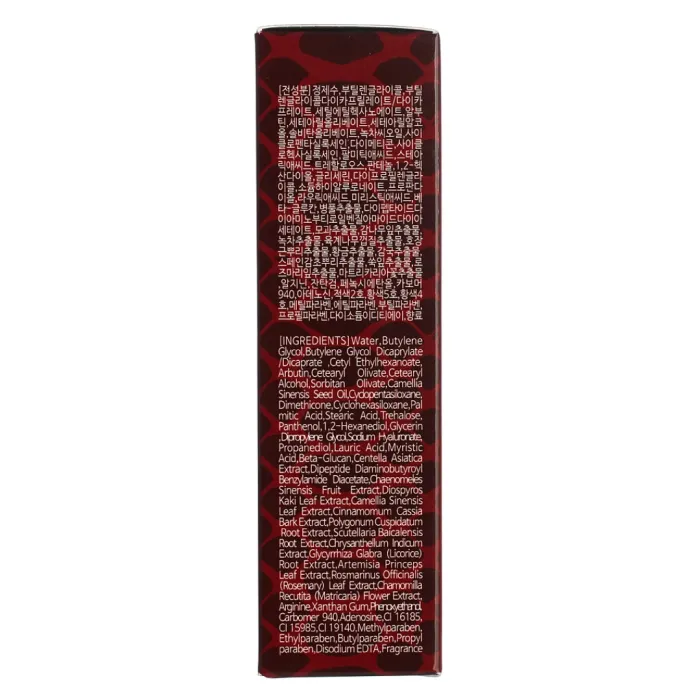 Состав: Water, butylene glycol, butylene glycol dicaprylate/dicaprate, cetyl ethylhexanoate, arbutin, cetearyl olivate, cetearyl alcohol, sorbitan olivate, camellia sinensis seed oil, cyclopentasiloxane, dimethicone, cyclohexasiloxane, palmitic acid, stearic acid, trehalose, panthenol, sodium hyaluronate (гиалуроновая кислота), beta-glucan (бета-глюкан), centella asiatica extract (экстракт центеллы азиатской), dipeptide diaminobutyroyl benzylamide diacetate (змеиный пептид).