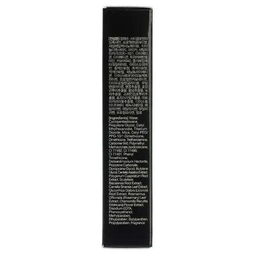 Состав: вода, циклопентасилоксан, пропиленгликоль, цетил этилгексаноат, диоксид титана, слюда; экстракты центеллы азиатской, корня горца японского, корня шлемника байкальского, листьев зелёного чая, корня лакрицы, листьев розмарина и цветков ромашки.