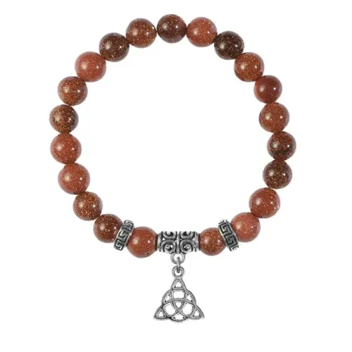 Браслет с подвеской-талисманом в виде трикветра. Изготовлен из синтетического коричневого авантюрина и бижутерного сплава.