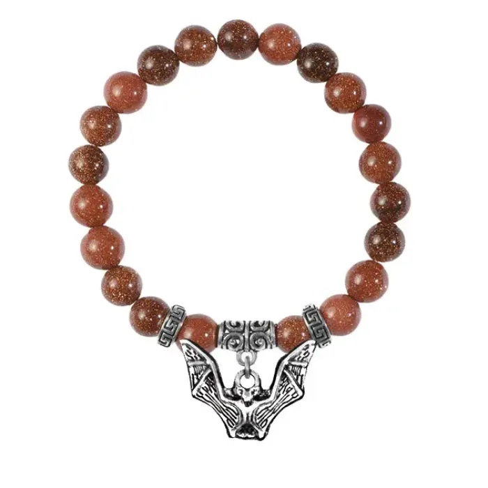 Браслет-амулет из коричневого авантюрина с подвеской в виде летучей мыши.