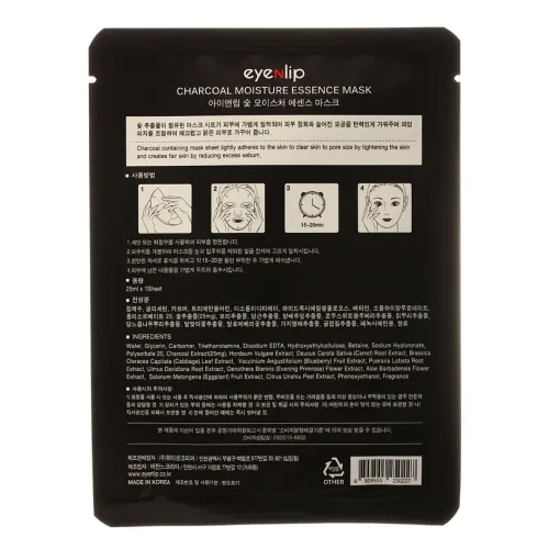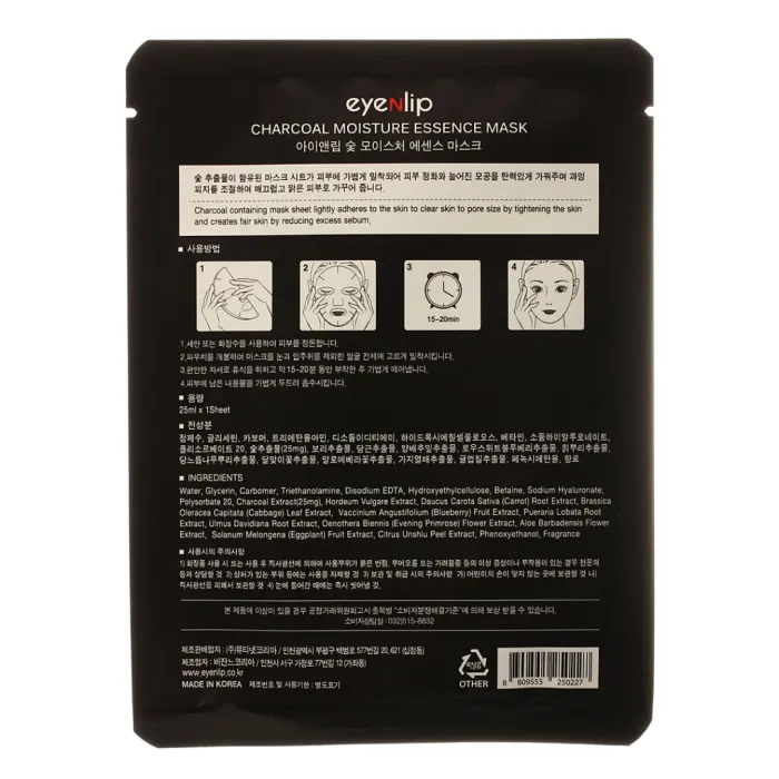 Маска для лица тканевая CHARCOAL OIL MOISTURE ESSENCE MASK от Eyenlip обеспечивает глубокое увлажнение и интенсивное питание кожи. Высококонцентрированная эссенция в составе насыщает кожу витаминами и влагой, устраняя сухость и шелушение. Маска придаёт коже сияние и эластичность благодаря содержанию древесного угля, который очищает кожу, сужает поры и регулирует выработку кожного жира. Богатая минералами формула помогает подсушивать воспаления и оказывает антисептический эффект.