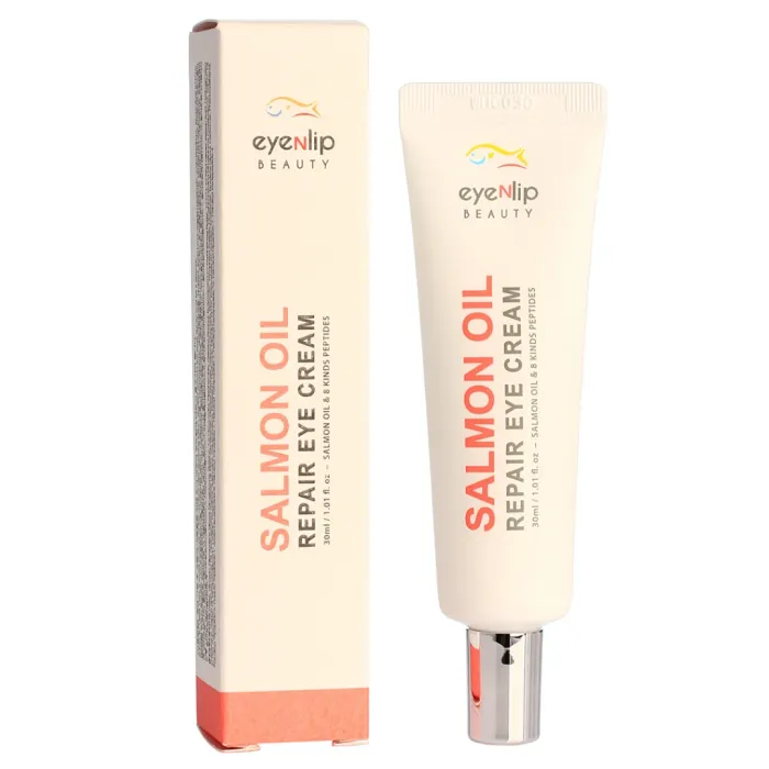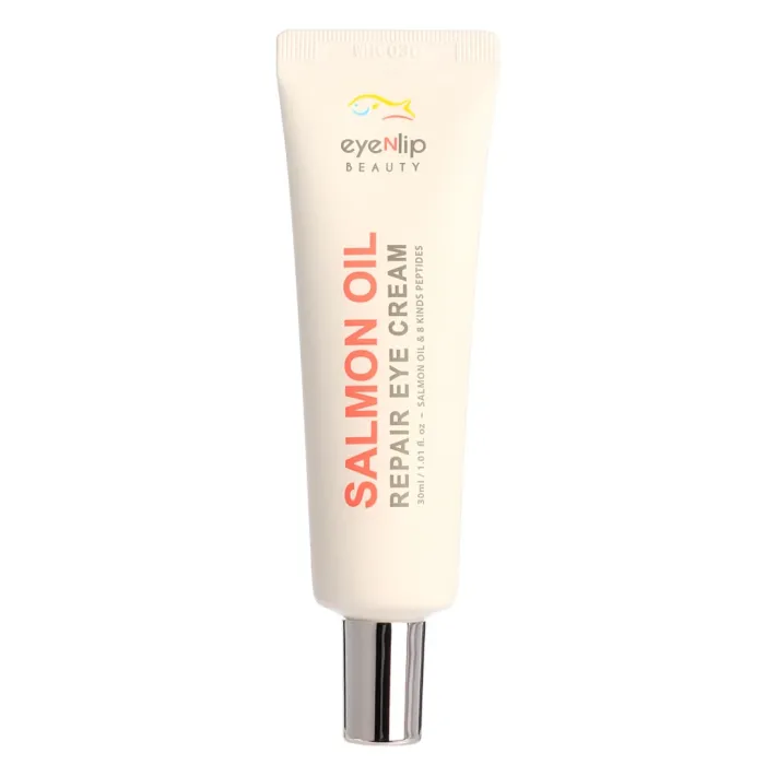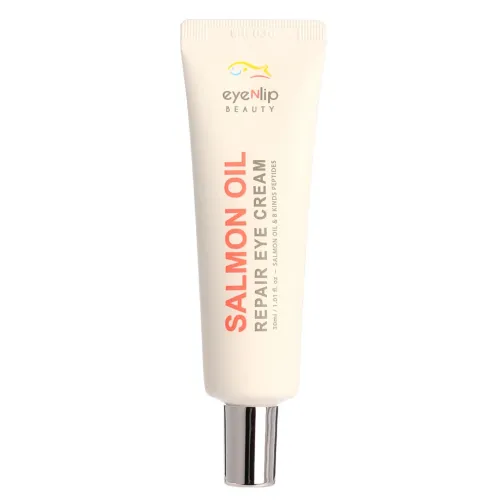 Крем для глаз с лососевым маслом Salmon Oil Repair Eye Cream от Eyenlip — это омолаживающее и питательное средство, специально разработанное для ухода за кожей вокруг глаз. Благодаря уникальной формуле, включающей масло лосося и пептиды, крем обеспечивает глубокое питание и восстановление кожи. Масло лосося активно увлажняет кожу, в то время как керамиды способствуют укреплению защитного барьера. Пептиды помогают бороться с морщинами и обвисанием кожи.