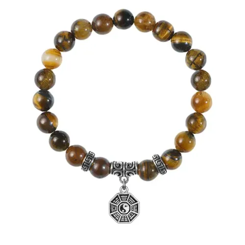 Браслет-амулет из натурального камня тигровый глаз с подвеской в виде символа багуа.