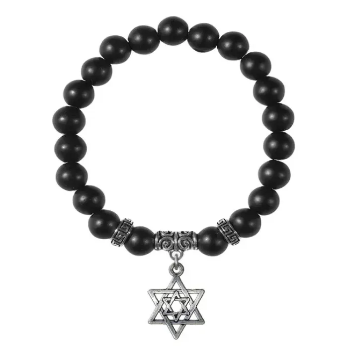 Браслет-амулет из синтетического шунгита с подвеской в виде Звезды Давида.