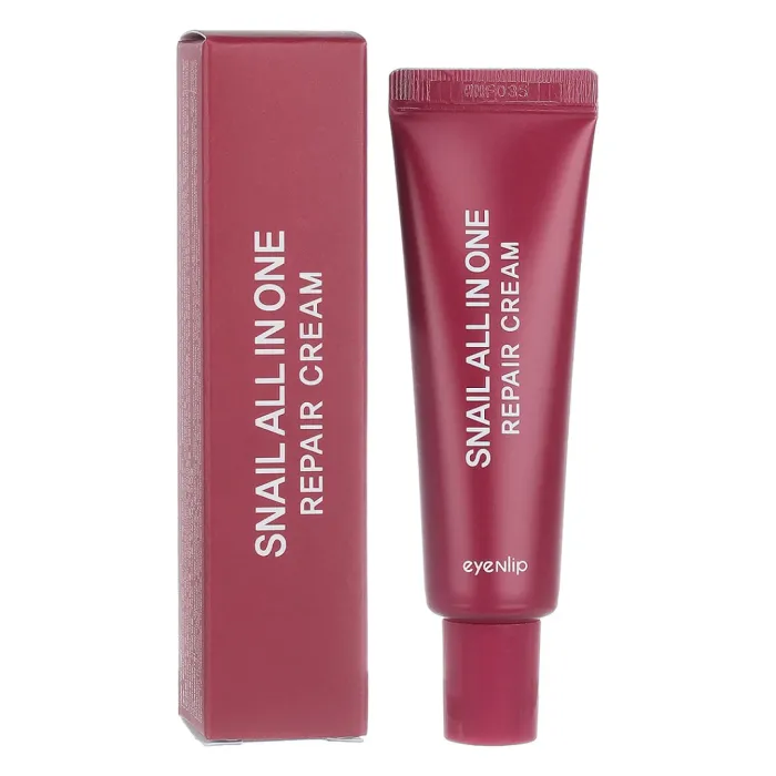 Восстанавливающий крем для лица SNAIL ALL IN ONE REPAIR CREAM от Eyenlip содержит 40% муцина улитки, что делает его идеальным средством для ухода за кожей. Крем эффективно увлажняет и питает кожу, сохраняя влагу и делая её гладкой, нежной и эластичной. Продукт подходит для любого типа кожи.