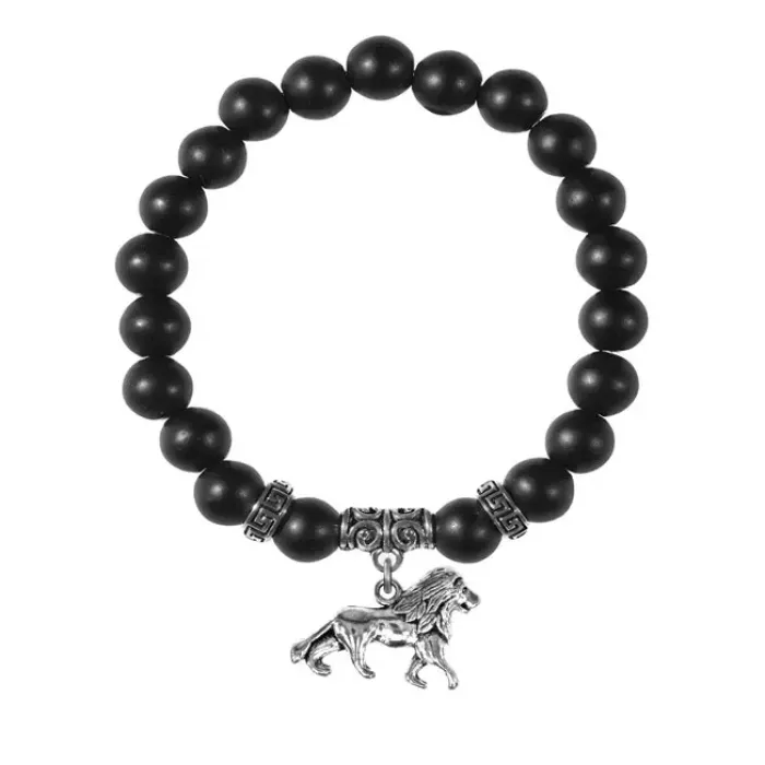 Браслет-амулет из шунгита с подвеской в виде льва.
