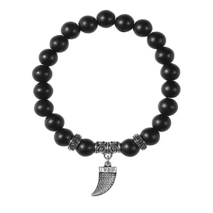 Браслет-амулет с подвеской в виде клыка из синтетического шунгита и бижутерного сплава.