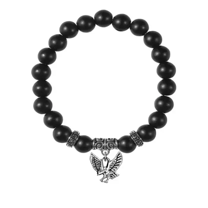 Браслет-амулет из синтетического шунгита с подвеской в виде орла.