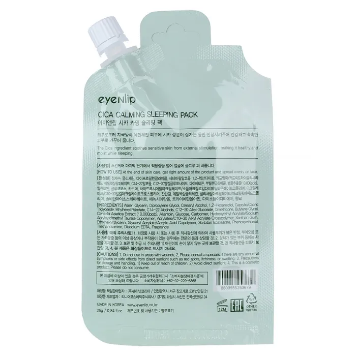 Ночная маска Cica Calming Sleeping Pack от Eyenlip разработана специально для ухода за чувствительной кожей. Она содержит экстракт центеллы азиатской, который успокаивает кожу и защищает её от внешних раздражителей в течение ночи. Маска способствует поддержанию здоровья кожи, делая её увлажнённой и сияющей.