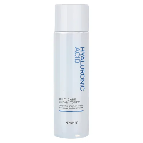 Многофункциональный крем-тонер с гиалуроновой кислотой Hyaluronic Acid Multi Care Cream & Toner от Eyenlip предназначен для мягкого и глубокого увлажнения кожи. Этот продукт помогает освежить, осветлить и придать коже здоровое сияние. Благодаря уникальной формуле, включающей семь видов гиалуроновой кислоты разной молекулярной массы, средство эффективно поддерживает оптимальный уровень влажности кожи.