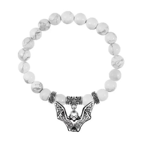 Браслет из натурального камня кахолонг с подвеской в виде летучей мыши.