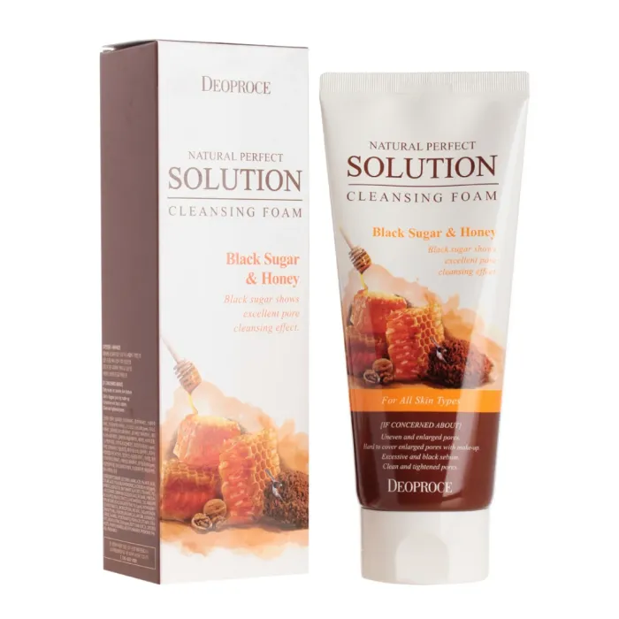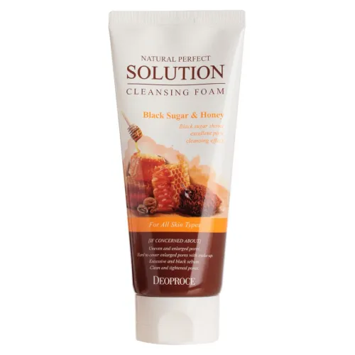 Пенка-скраб для умывания Natural Perfect Solution Cleansing Foam Pore Care Black Sugar & Honey от Deoproce разработана специально для бережного ухода за кожей лица. Основой средства является бурый сахар, который эффективно очищает поры и мягко отшелушивает омертвевшие клетки кожи, не вызывая раздражения. В состав также входят измельчённый грецкий орех и мёд, которые способствуют сужению пор и придают продукту лёгкий аромат.