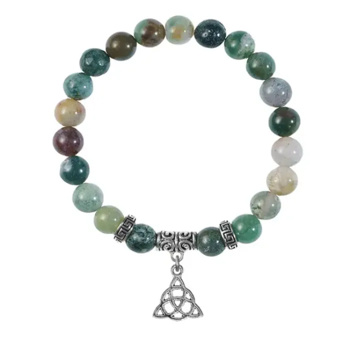 Браслет-амулет из натуральной яшмы с подвеской в виде трикветра из бижутерного сплава.