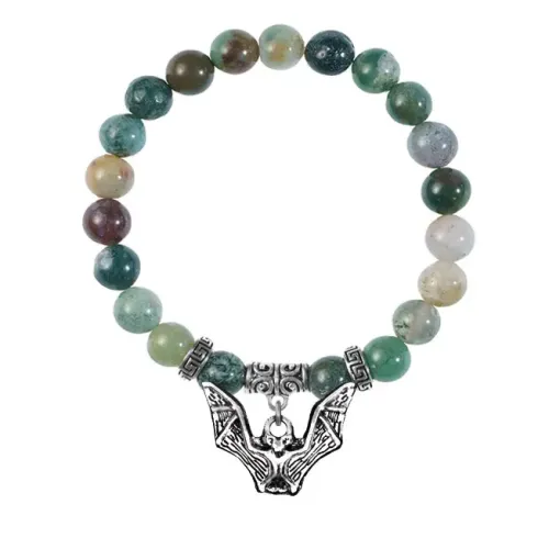 Браслет-амулет из натуральной яшмы с подвеской в виде летучей мыши из бижутерного сплава.