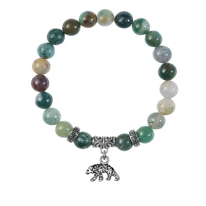 Браслет из натуральной яшмы с подвеской-талисманом в виде медведя.