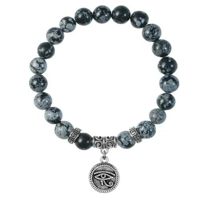 Браслет-амулет из натурального снежного обсидиана с подвеской из бижутерного сплава.