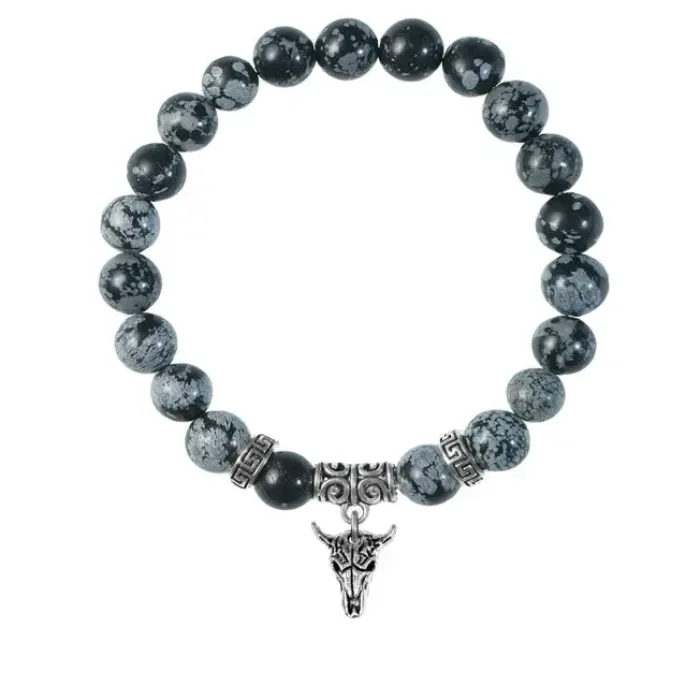Браслет Череп быка (сила, мужество, защита), Снежный обсидиан