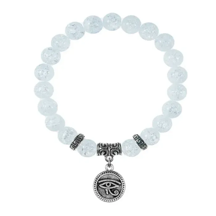 Браслет-амулет из синтетического сахарного кварца с подвеской в виде символа Око Ра.