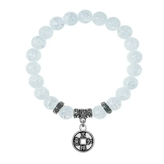 Браслет-амулет из синтетического сахарного кварца с подвеской-талисманом из бижутерного сплава.