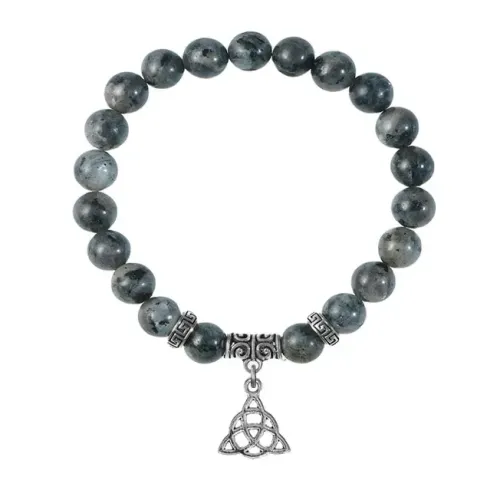 Браслет из натурального камня лабрадор с подвеской-талисманом в виде трикветра.