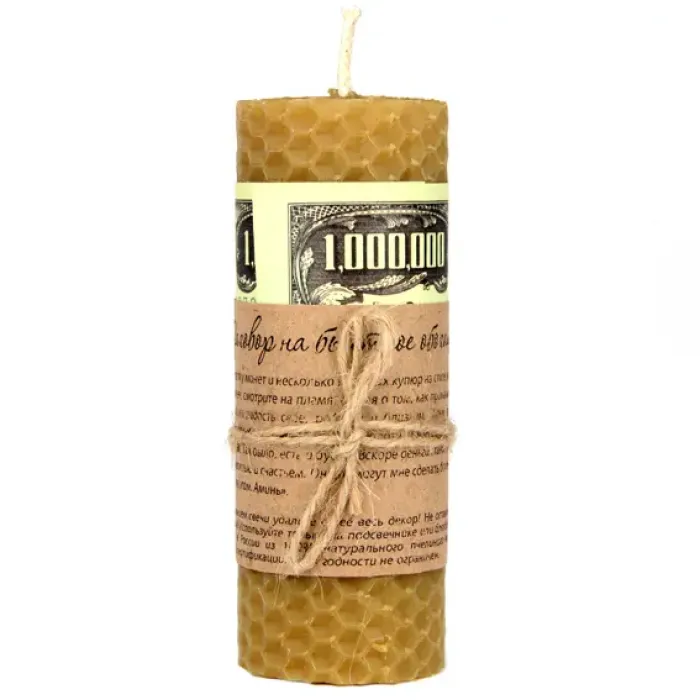 Свеча с заговором на быстрое обогащение 10х3,7см натуральный воск MSV029