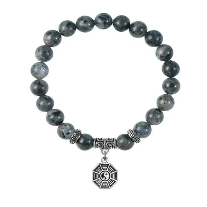 Браслет-амулет из натурального камня лабрадор с подвеской в виде символа багуа.